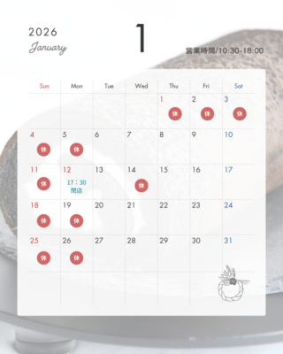 【店休日】日曜・月曜(12月20日は臨時休業、振替で12月29日を営業日といたします)
